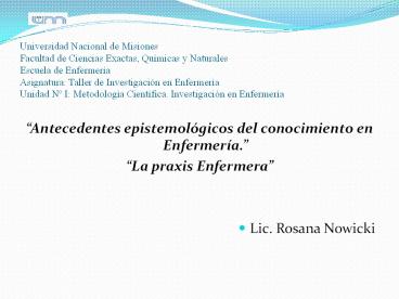 <Notice: Removed> Universidad Nacional de Misiones Facultad de Ciencias Exactas, Qu PowerPoint PPT Presentation