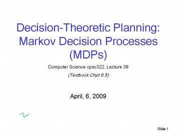 <Notice: Removed> Decision-Theoretic Planning: Markov Decision Processes (MDPs) PowerPoint PPT Presentation