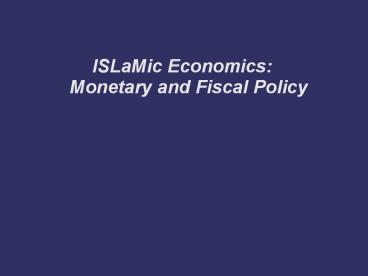 Title: ISLaMic Economics: Monetary and Fiscal Policy