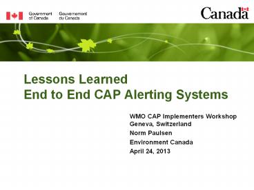 <Notice: Removed> Lessons Learned End to End CAP Alerting Systems PowerPoint PPT Presentation