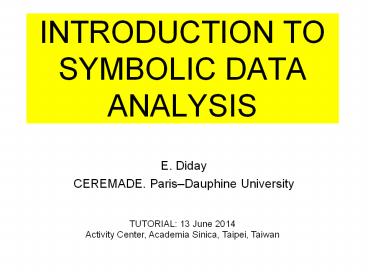 <Notice: Removed> INTRODUCTION TO SYMBOLIC DATA ANALYSIS PowerPoint PPT Presentation