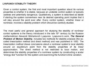 <Notice: Removed> Slotine and Li, Applied Nonlinear Control PowerPoint PPT Presentation