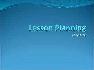 <Notice: Removed> Lesson Planning PowerPoint PPT Presentation