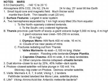 1NOTES MARS 0.53 Diam(earth), -140 oC to 20