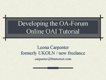 <Notice: Removed> Developing the OA-Forum Online OAI Tutorial PowerPoint PPT Presentation