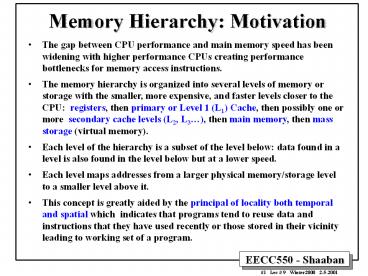 <Notice: Removed> Memory Hierarchy: Motivation PowerPoint PPT Presentation