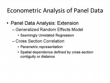 Title: Econometric Analysis of Panel Data
