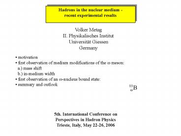 Hadron Physics Trieste, Italy, May 22-26, 2006