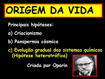ORIGEM DA VIDA PowerPoint PPT Presentation