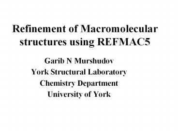 <Notice: Removed> Refinement of Macromolecular structures using REFMAC5 PowerPoint PPT Presentation
