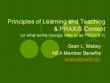 <Notice: Removed> Principles of Learning and Teaching PowerPoint PPT Presentation