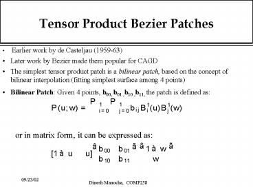 Tensor Product Bezier Patches PowerPoint PPT Presentation