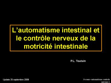 1Lautomatisme intestinal et le contrôle nerveux