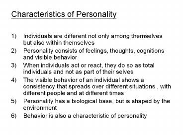 <Notice: Removed> Characteristics of Personality PowerPoint PPT Presentation