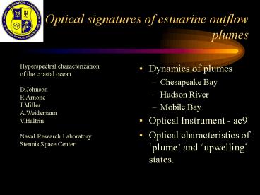 Optical signatures of estuarine outflow plumes PowerPoint PPT Presentation