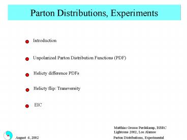 Parton Distributions, Experiments PowerPoint PPT Presentation