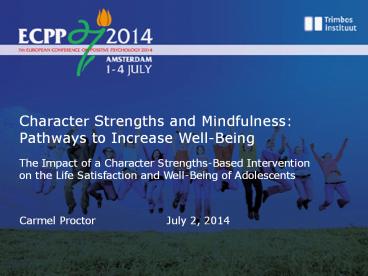 Character Strengths and Mindfulness: Pathways to Increase Well-Being PowerPoint PPT Presentation