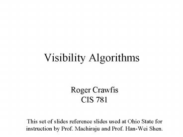 <Notice: Removed> Visibility Algorithms PowerPoint PPT Presentation