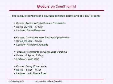 and of 3 ECTS each. - Course Topics in Finite Domain Constraints