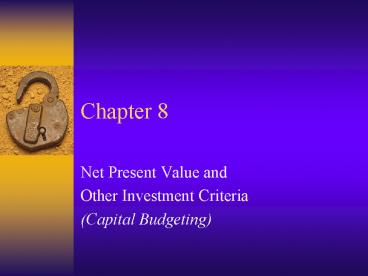 ventures to decide which are worth undertaking - Net Present Value (NPV)