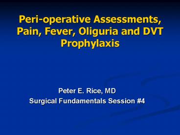 Title: Peri-operative Assessments, Pain, Fever, Oliguria and DVT Prophylaxis