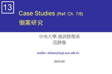 Case Studies (Ref: Ch. 7/8) ???? PowerPoint PPT Presentation