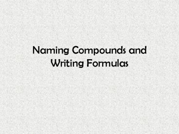 <Notice: Removed> Naming Compounds and Writing Formulas PowerPoint PPT Presentation