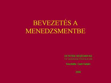 1BEVEZETÉS A MENEDZSMENTBE