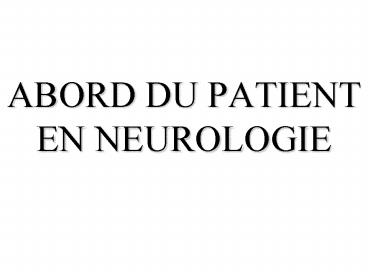 Title: ABORD DU PATIENT EN NEUROLOGIE