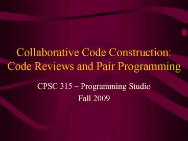 <Notice: Removed> Collaborative Code Construction: Code Reviews and Pair Programming PowerPoint PPT Presentation