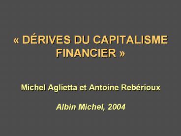 1 DÉRIVES DU CAPITALISME FINANCIER