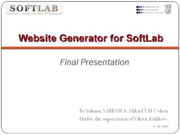 Website Generator for SoftLab Final Presentation By Yohann SABBAH & Mikael V.H Cohen-Under the supervision of Viktor Kulikov-* Goal of the project * Abstract ... – PowerPoint PPT presentation