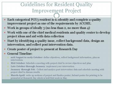 Guidelines for Resident Quality Improvement Project PowerPoint PPT Presentation