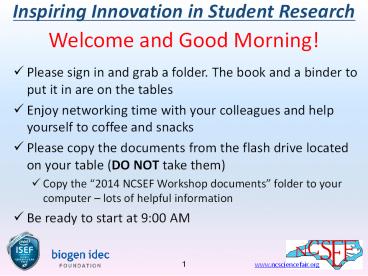 located on your table (DO NOT take them) - Copy the 2014 NCSEF Workshop documents folder