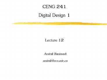 Title: CENG 241 Digital Design 1 Lecture 12