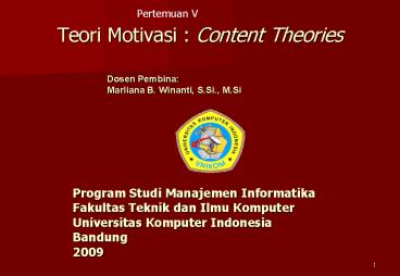 <Notice: Removed> Teori Motivasi : Content Theories PowerPoint PPT Presentation