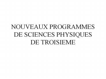 <Notice: Removed> NOUVEAUX PROGRAMMES DE SCIENCES PHYSIQUES DE TROISIEME PowerPoint PPT Presentation
