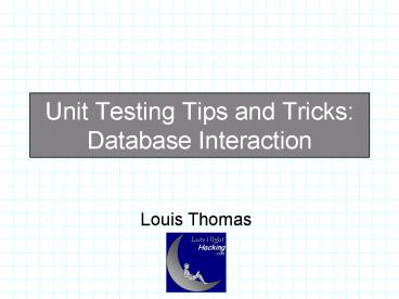 Title: Unit Testing Tips and Tricks: Database Interaction
