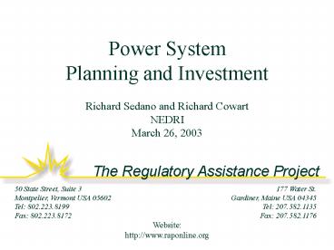 1Power SystemPlanning and Investment