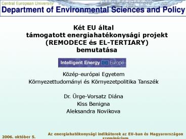 Környezetpolitika Tanszék Dr. Ürge-Vorsatz