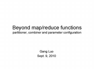 Beyond map/reduce functions partitioner, combiner and parameter configuration Gang Luo Sept. 9, 2010 Partitioner Determine which reducer/partition one record should ... – PowerPoint PPT presentation