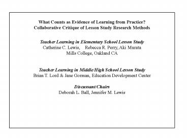 <Notice: Removed> What Counts as Evidence of Learning from Practice? PowerPoint PPT Presentation