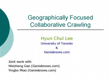 Title: Geographically Focused Collaborative Crawling