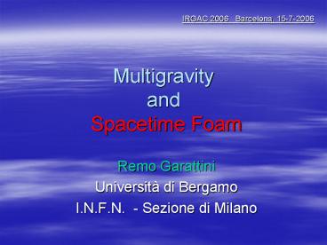 <Notice: Removed> Multigravity and Spacetime Foam PowerPoint PPT Presentation