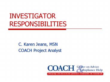 Title: INVESTIGATOR RESPONSIBILITIES