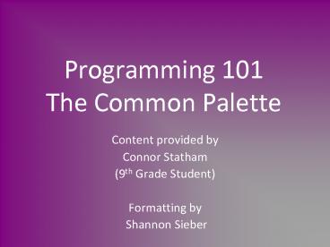 <Notice: Removed> Programming 101 The Common Palette PowerPoint PPT Presentation