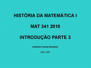 1 HISTÓRIA DA MATEMÁTICA I MAT 341