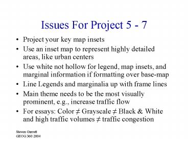 • Use white not hollow for legend, map insets, and