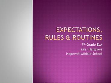 <Notice: Removed> Expectations, Rules PowerPoint PPT Presentation