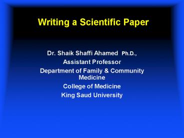 Title: Writing a Scientific Paper